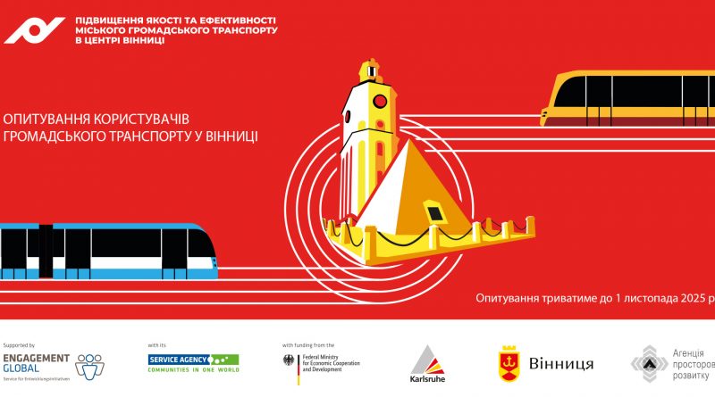 У межах проєкту «Підвищення якості та ефективності міського громадського транспорту в центрі Вінниці / Україна» (Nakopa) проводиться опитування серед мешканців громади. Його мета — розробити інструменти для адаптації європейських стандартів міської мобільності, зокрема у сфері безпечних, екологічних і безбар’єрних перевезень. Взяти участь у дослідженні можна до 1 листопада, заповнивши анкету за посиланням: https://forms.gle/tNKGDgzz9Fipnguy9.