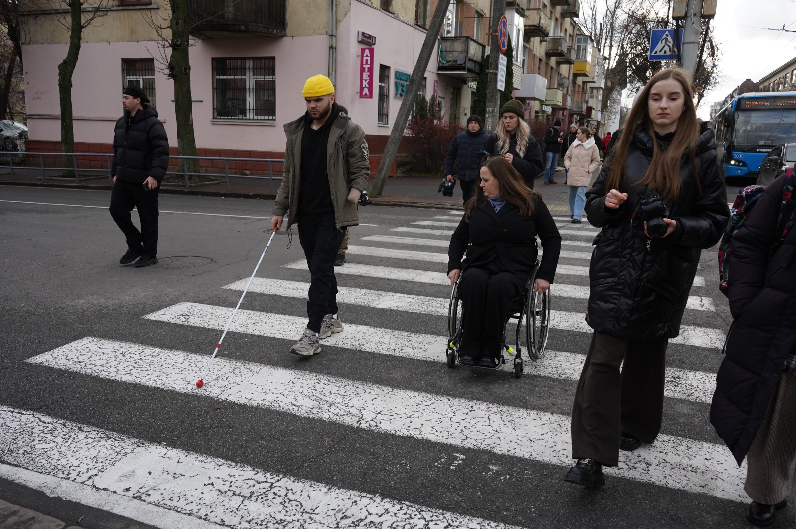У центрі Вінниці ветеран Андрій Соловко перевірив доступність безбар’єрного маршруту