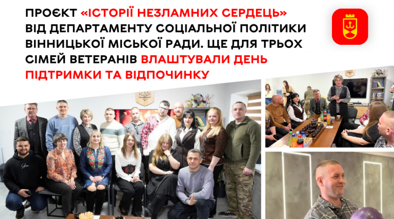 У межах проєкту «Історії незламних сердець» департамент соціальної політики та управління ветеранської політики втретє організували особливий день для сімей ветеранів. 7 квітня три родини брали участь у психологічному тренінгу, годинах краси, дружній грі в боулінг та сімейній фотосесії, завершивши день романтичною вечерею. Подія стала підтримкою для подружніх пар, подарувавши час для відпочинку та відновлення близькості.