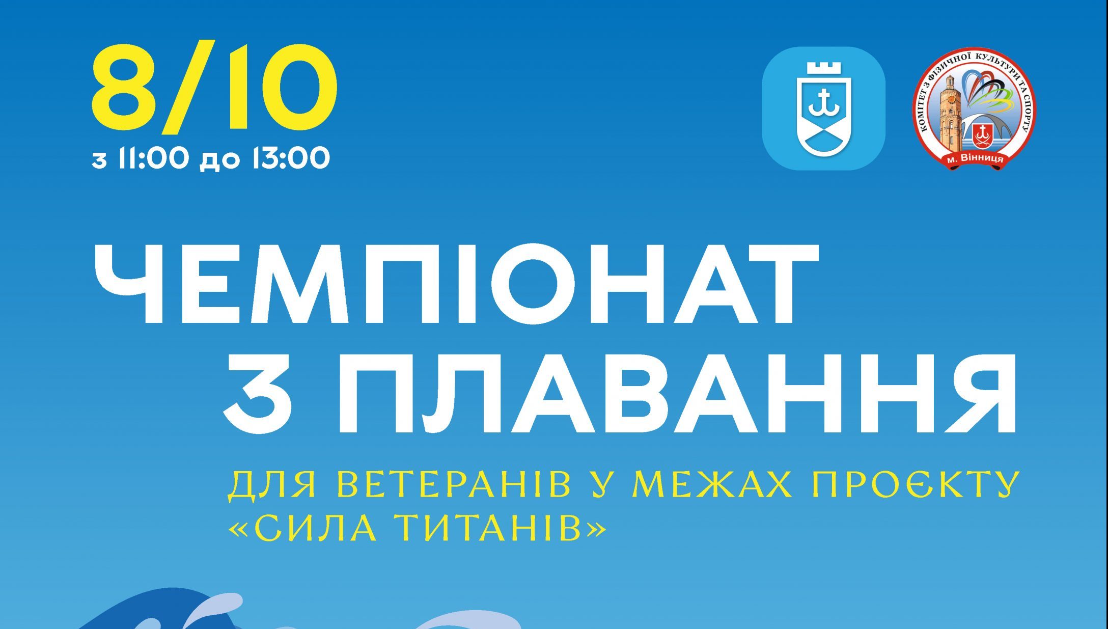 У Вінниці триває підтримка адаптивного спорту для ветеранів і ветеранок. У рамках проєкту «Сила титанів» міська рада проводить відкритий чемпіонат з плавання. Подія поєднає спортивне суперництво з можливістю обміну досвідом та зміцнення командного духу. Реєстрація вже відкрита. Захід відбудеться під егідою міської ради та комітету з фізичної культури і спорту.