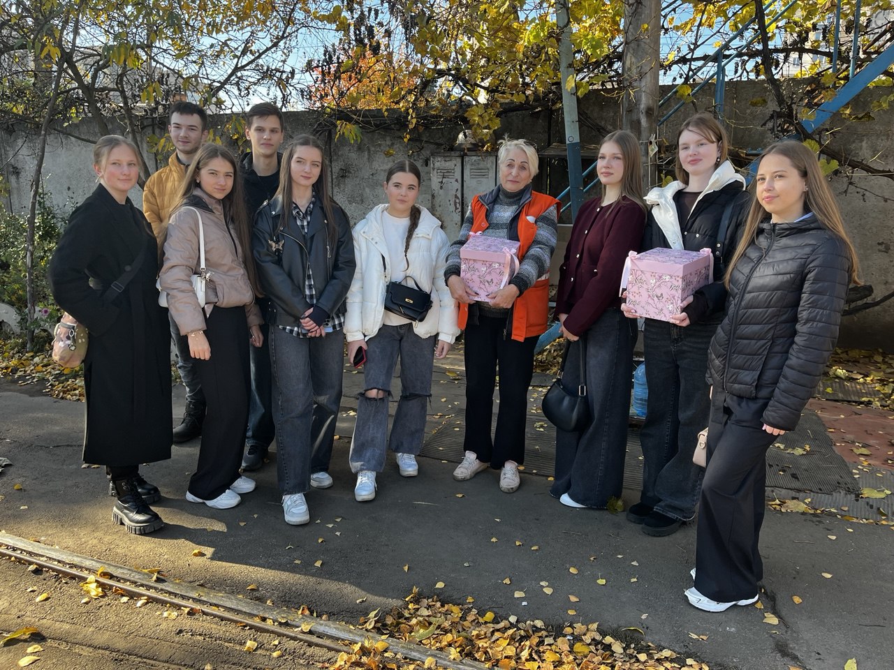 Учні-волонтери центру «VinPatriot» підготували подарунки для ветеранів Вінницької транспортної компанії, які понад півстоліття щодня працюють для ритму життя міста. П’ятеро працівників, чия робота пов’язана з трамвайними рейками та тролейбусними лініями, отримали бокси турботи.