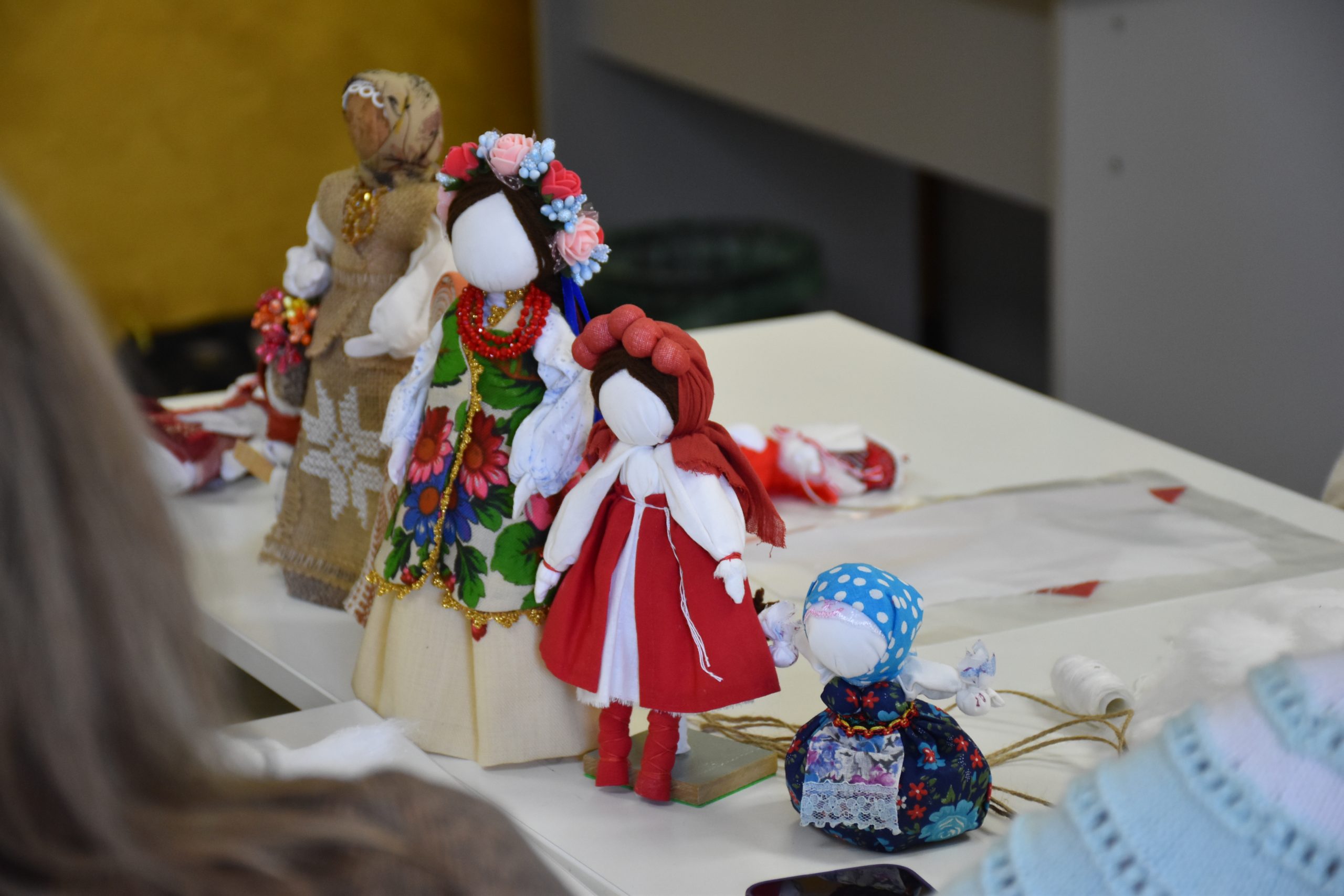 Під час заняття учасниці дізналися про традиційне значення ляльки-оберега, навчитися правильно мотати тканину без використання голки та створити власну мотанку з побажаннями для себе та своїх близьких.