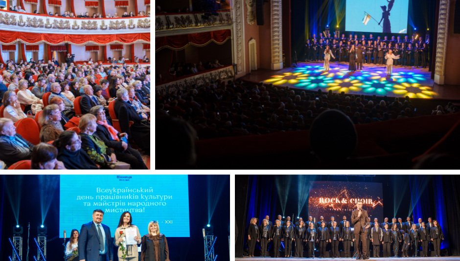 7 листопада у стінах Вінницького музично-драматичного театру імені М. Садовського панувала справжня атмосфера єдності та вдячності. Цього вечора лунали оплески на честь людей, котрі своєю творчістю оберігають українську душу, несуть світло культури й надії навіть крізь темряву війни. Урочисте дійство зібрало митців, педагогів, музикантів і всіх, хто присвятив життя мистецтву. Яскравим фінальним акордом став проєкт «Rock-n-Choir», що поєднав сучасне звучання з духовною силою української пісні. Окрім мистецького сенсу, захід мав благородну мету — зібрати кошти на підтримку працівників культури, які нині стоять на захисті нашої держави.