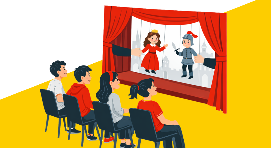 Юні глядачі поринуть у казкове шоу з дивовижними героями: Арлекіном, П’єро, Коломбіною, чарівником Володарем часу та сучасним персонажем, знайомим дітлахам – Лабубу.