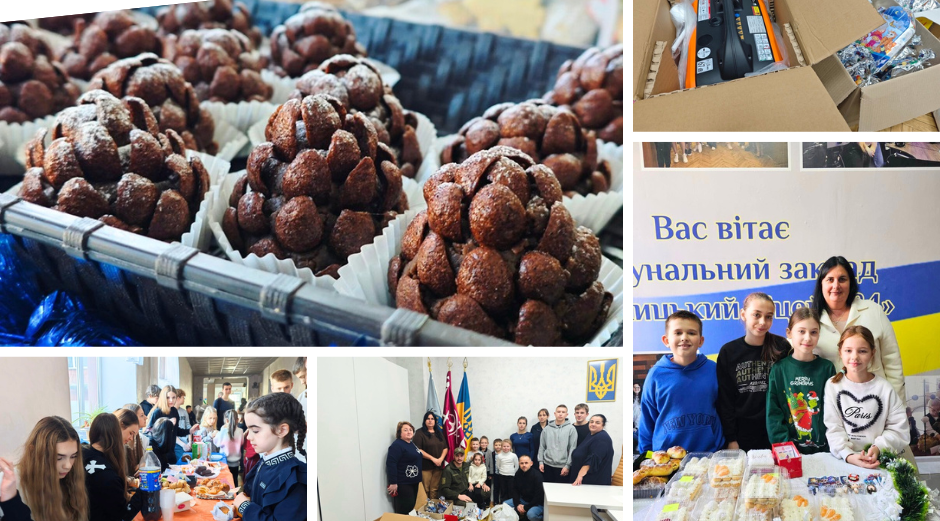 Ярмарок був святковим і смачним. Імбирне печиво у формі ялинок, зірочок і сніговиків, домашні трюфелі та «рафаелло», пиріжки й рулетики з маком, штолен, морквяний кекс, брауні: десятки позицій розліталися за донати. Усе готували учні разом із батьками та педагогами з турботою й вірою в Перемогу.