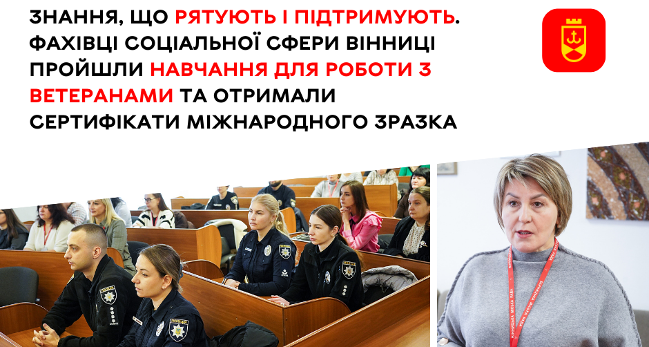 Нещодавно працівники департаменту соціальної політики Вінницької міської ради, соціальних служб міста та Національної поліції Вінницької області пройшли навчання від громадської організації «Ветерани на сторожі миру» в рамках проєкту «Психологічна реабілітація суспільства після переможного закінчення війни».