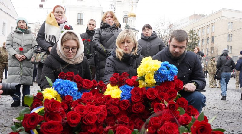 Традиційно у цей день представники міської та обласної влади, громадських організацій, військові, правоохоронці, рідні полеглих воїнів та небайдужі жителі міста поклали квіти до пам’ятного знаку Небесній Сотні і загиблим героям російсько-української війни, що на площі Шевченка.