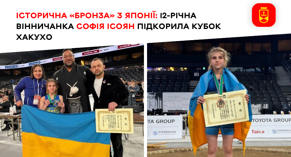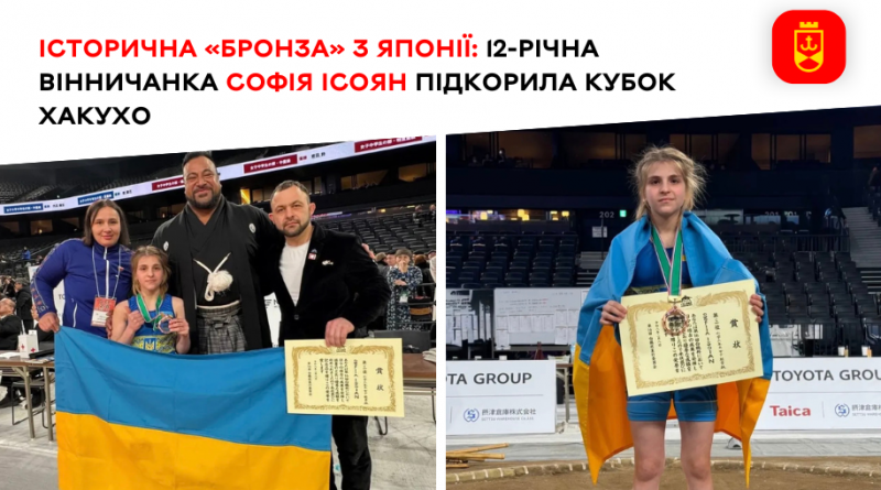 Вихованка Вінницької міської ДЮСШ № 5 Софія Ісоян стала справжньою сенсацією міжнародного юнацького турніру з сумо Hakuho Cup 2026. У столиці Японії, Токіо, юна спортсменка виборола бронзу у ваговій категорії до 45 кг, продемонструвавши силу та конкурентоспроможність українського сумо на світовій арені.