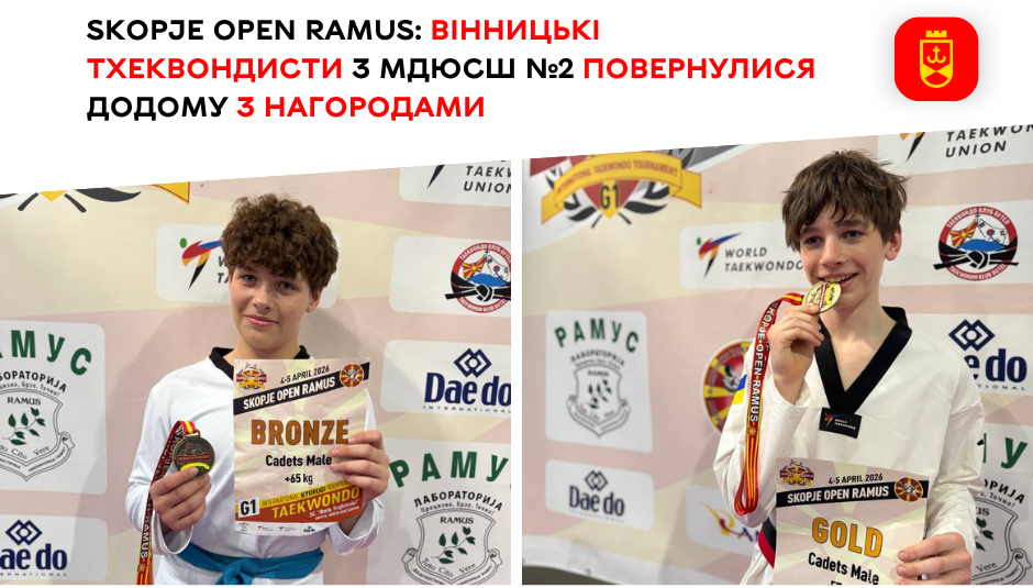 У місті Скоп’є 4–5 квітня проходив міжнародний турнір з тхеквондо (ВТФ) Skopje Open Ramus, що входить до серії етапів Кубка світу. Близько 1100 спортсменів із 41 країни змагалися за нагороди. Вінницькі тхеквондисти з МДЮСШ №2 гідно представили місто, виборовши «золото» та «бронзу».