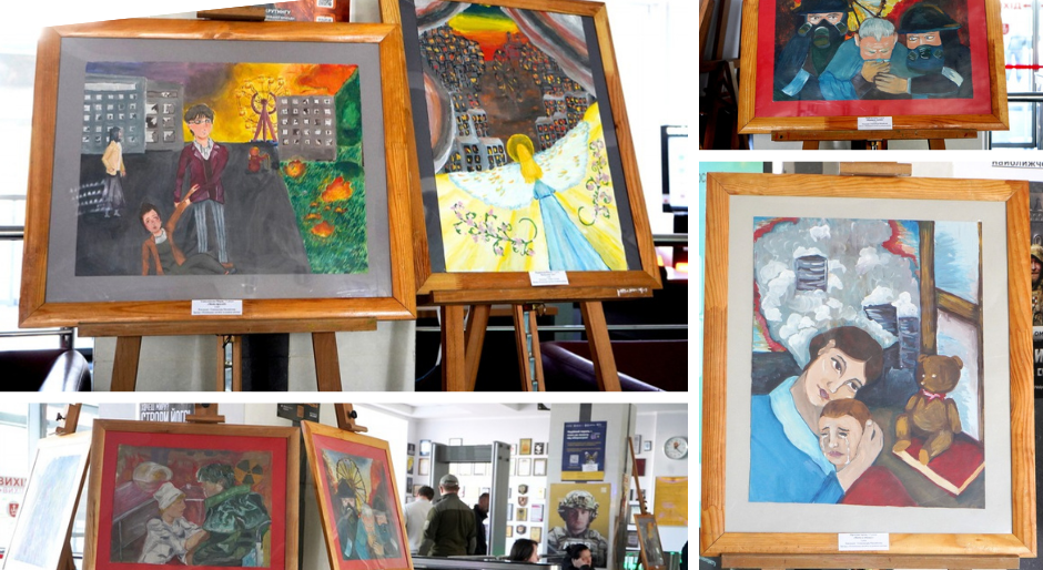 Діти працювали над створенням своїх тематичних композицій під керівництвом викладачок школи Олександри Михайлової та Любові Литвин. Тут кожен малюнок вражає щирістю, емоційною глибиною та символізмом. Це не просто зображення, а внутрішній діалог юних художників із історією, яку вони намагаються осмислити через власне сприйняття.